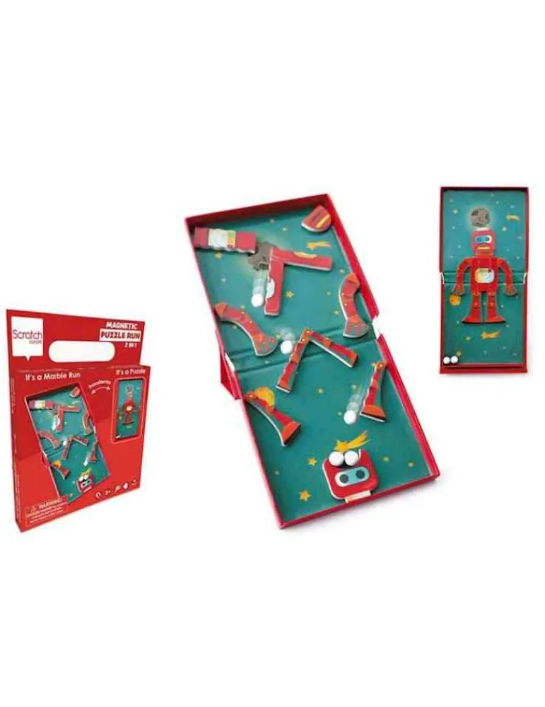 Le puzzle robot magnétique et circuit de billes de Scratch est un jeu deux en un qui va ravir les enfants. Il est tout d’abord présenté dans une boite en carton qui permet de facilement l’emmener partout pour un petit puzzle ou un petit circuit de billes.