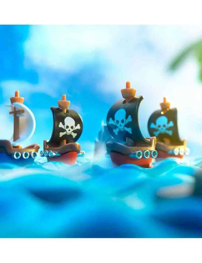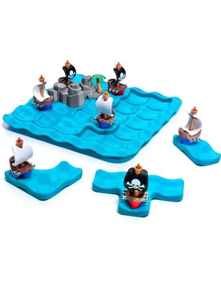 Pirates en vue de Smart Games est un jeu complet abordable dès 7 ans, facile à transporter partout Le plateau de jeu représente l’océan..